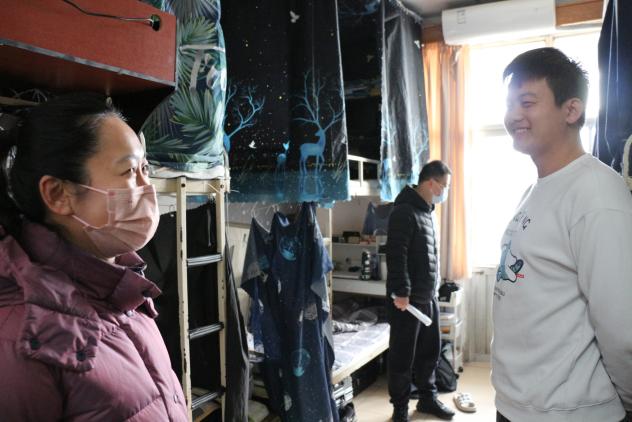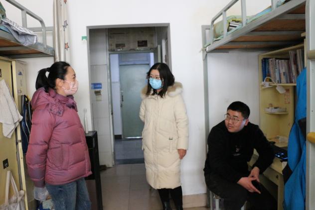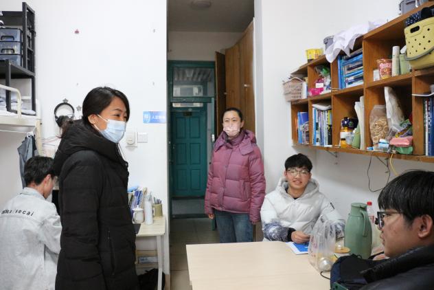 2月29日,全体辅导员在党委副书记姜素琼带领下,挨个走访学生公寓楼,检查宿舍卫生大扫除情况,深入宿舍排查违章电器、电动车充电、劣质插排和饮水机等不合格电器,处置化解消防安全隐患。与同学们亲切交流返校后身心感受、新学期规划安排等事宜,提醒同学们多开窗通风,合理利用宿舍空间规置个人物品,不断改善宿舍环境。走访中还着重对本科毕业生考研、就业等情况进行了跟进,听取了部分毕业生的问题困惑与诉求,并有针对性地进行了现场答疑指导。
