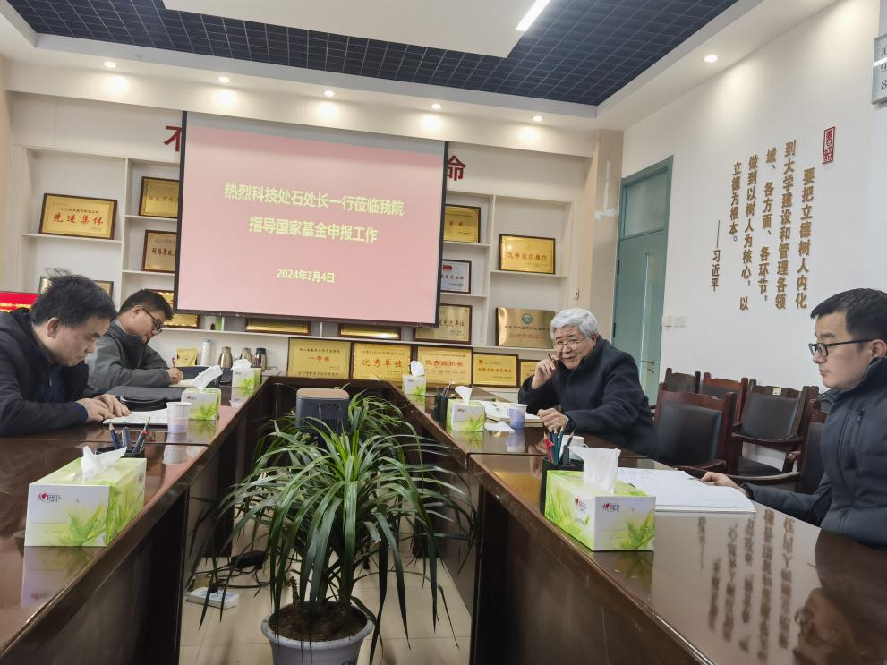 3月4日下午,科学技术处副处长石文峰,成果信息科科长彭帅星一行来学院指导2024年国家基金申报工作。williamhill英国院长杨凤堂、副院长邓洪宽、研究生与科研工作办公室主任冯玲参加本次工作座谈会。