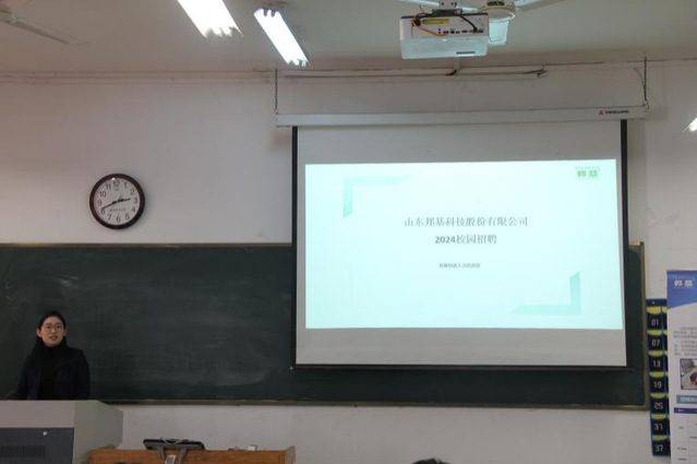 3月23日下午,山东邦基科技股份有限公司在13教201室开展招聘宣讲。邦基科技人力资源部唐志雯宣讲,2024届部分毕业生参加。