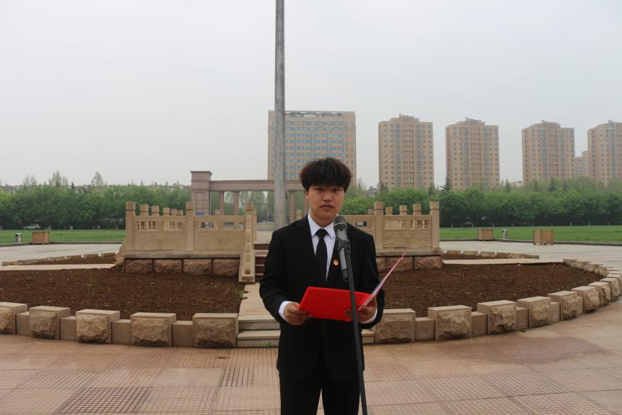 学院青年学生代表、制药2301班班长孔紫玉竹以“唱响新时代的青春之歌”为做国旗下演讲,号召全体同窗牢固树立“国之大者”,实干笃行、担当作为,与时代同频共振,用实际行动践行“强国有我”的青春誓言。