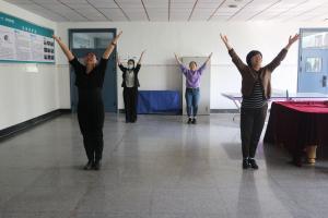 健美操训练中,大家伴着动感的音乐旋律,翩翩起舞,举手投足间尽显力与美的完美结合,在日复一日的练习中,大家加深了默契与配合,呈现效果渐入佳境,给人以美的享受。