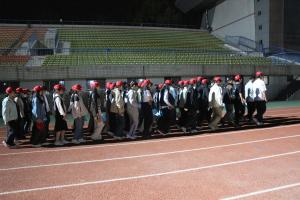 在中心体育场,方队训练在院学生会工作人员组织下有条不紊得进行中。大家队列齐整,闻令而动,步调一致,口号嘹亮,所彰显的我院青年学子青春活力、积极向上的精神风貌,不时吸引了路人驻足围观,拍手叫好。
