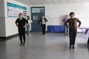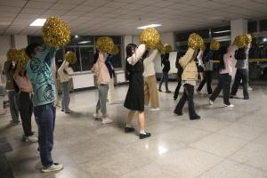在13号教学楼2楼北大厅,老师们利用课间时间坚持广播操训练,灿烂的笑容、规范的动作,让我们看到了课堂外老师们不一样的风采,期待大家赛场的精彩亮相。