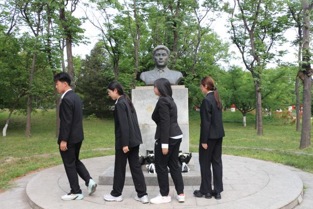 随后,青年学生代表认真清扫、擦拭了烈士雕像并敬献鲜花,众人集体默哀。