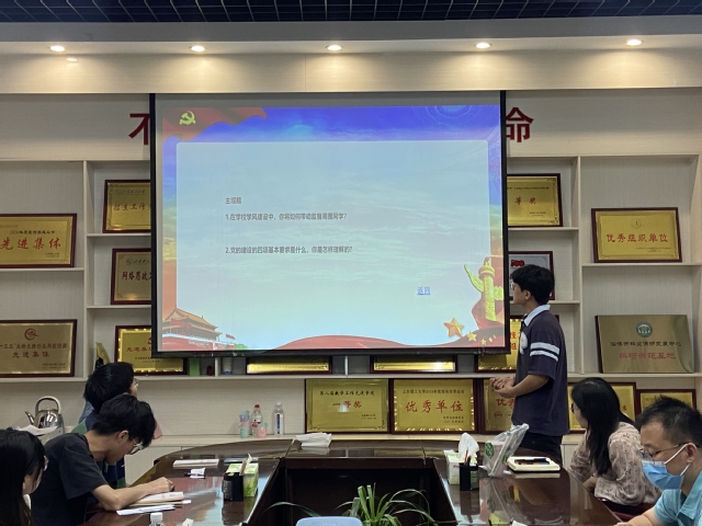会上支部书记刘丛丛、翟静涛通报了会议主题、内容及有关流程,强调了会议纪律和严肃性,要求各位发展对象认真对待本次答辩。此次答辩分为个人陈述、现场答辩、自主提问、无记名投票四个环节。答辩环节结束后,与会党员进行无记名投票,现场公布答辩结果。