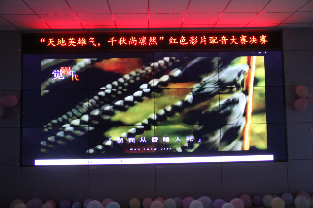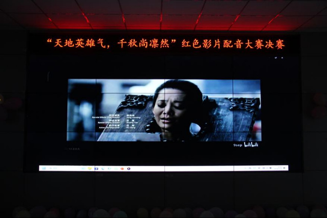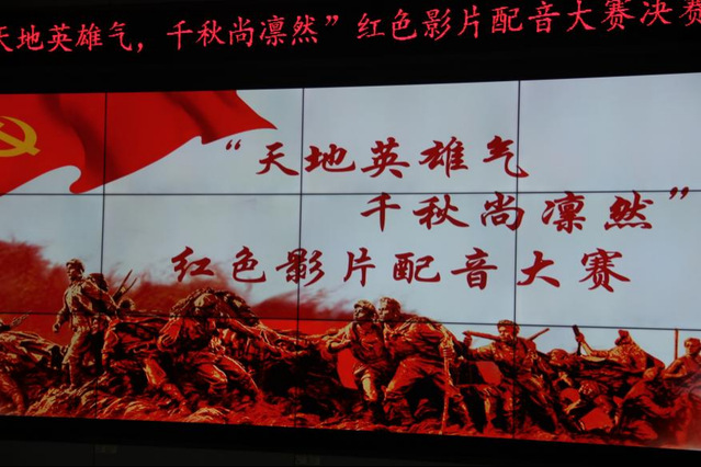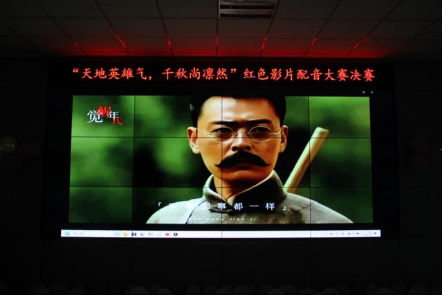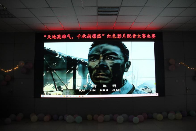 活动伊始,现场人员共同观看了红色影片原声展演,随着现场灯光关闭,比赛正式开始。本次比赛选手们带来的配音题材丰富多样,有历史故事、英雄人物、经典影视等。第一轮配音中参赛团体组分别带来的配音片段《血铸长城,卫我山河》、《血战湘江》和《亮剑》流露出他们的真情实感,在配音的过程中,每一个参赛者仿佛都做到了身临其境,充分的表现出了他们深刻而强烈的爱国情怀,展示出了最优秀的自己,尤其是反串表演,配音效果赢得阵阵掌声,使在场观众对接下来的几组配音表演更是充满了期待。
