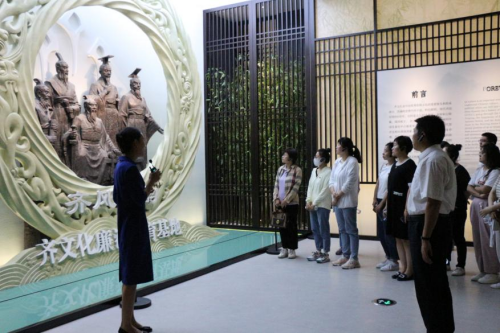 在讲解员的带领与细致解说下,学院一行先后观学了“泱泱齐风、尊贤任能、以人为本、开放包容、礼法并重、廉政明德”等6个主题教育展厅,深刻领悟了齐文化“正心修身、廉洁齐家、以廉理政”思想,增强了廉洁意识,坚定了文化自信。