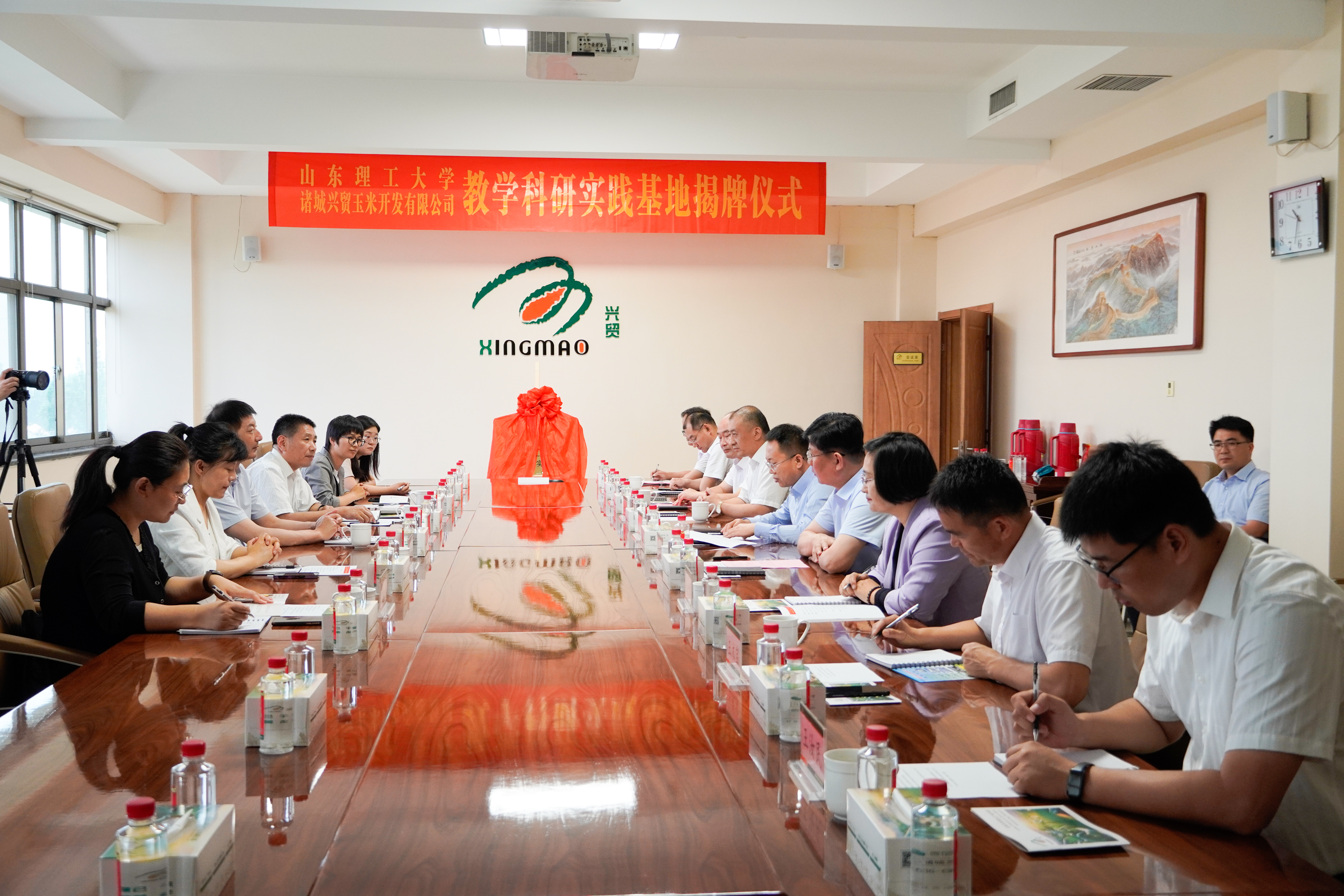 随后,党委常委、副校长郭庆兵和诸城兴贸公司副董事长王金鹏共同为“教学科研实践基地”揭牌。