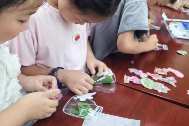 7月12日,实践团队将话题转向了夏日安全与健康。在轻松愉快的氛围中,宣讲人向小朋友们传授了防溺水的关键知识和夏日健康卫生的小贴士,帮助他们树立起自我保护的意识。随后,团队将创意与实践相结合,引导孩子们利用前一天制作的植物标本,结合自己的想象力,创作出了一系列别出心裁的创意标本小书签,这些书签不仅展现了孩子们的独特视角和无限创意,更成为了实践团队宝贵的回忆。