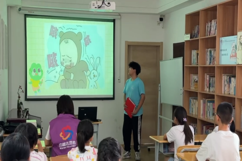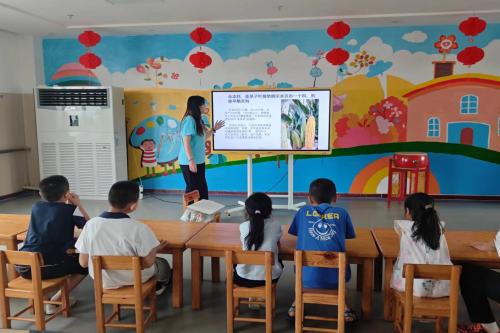 接着,七月蜜蜂实践团周长旭向孩子们做了关于青少年自救自护安全方面的宣讲,宣讲内容与学科教学有紧密联系,着重介绍了生活中在夏季比较常见的可能对身体有危害的生物,如隐翅虫、蚊子等昆虫。