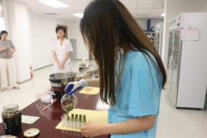 在制作艾草薄荷膏的过程中,团队成员深刻体会到了中医药制作的精细和严谨。他们认识到,每一个环节都关乎到最终产品的质量和疗效。通过亲手操作,他们对中医药的炮制工艺有了更直观的认识,也对中医的智慧和匠心感到由衷的敬佩。当艾草薄荷膏制作完成后,每位团队成员都得到了自己亲手制作的成品。他们小心翼翼地将这些劳动成果装入小瓶中,准备带回学校,作为这次实践活动的纪念。小小一瓶,凝结了草本精华和医者智慧,粘连了上下五千年的中医药文化。
