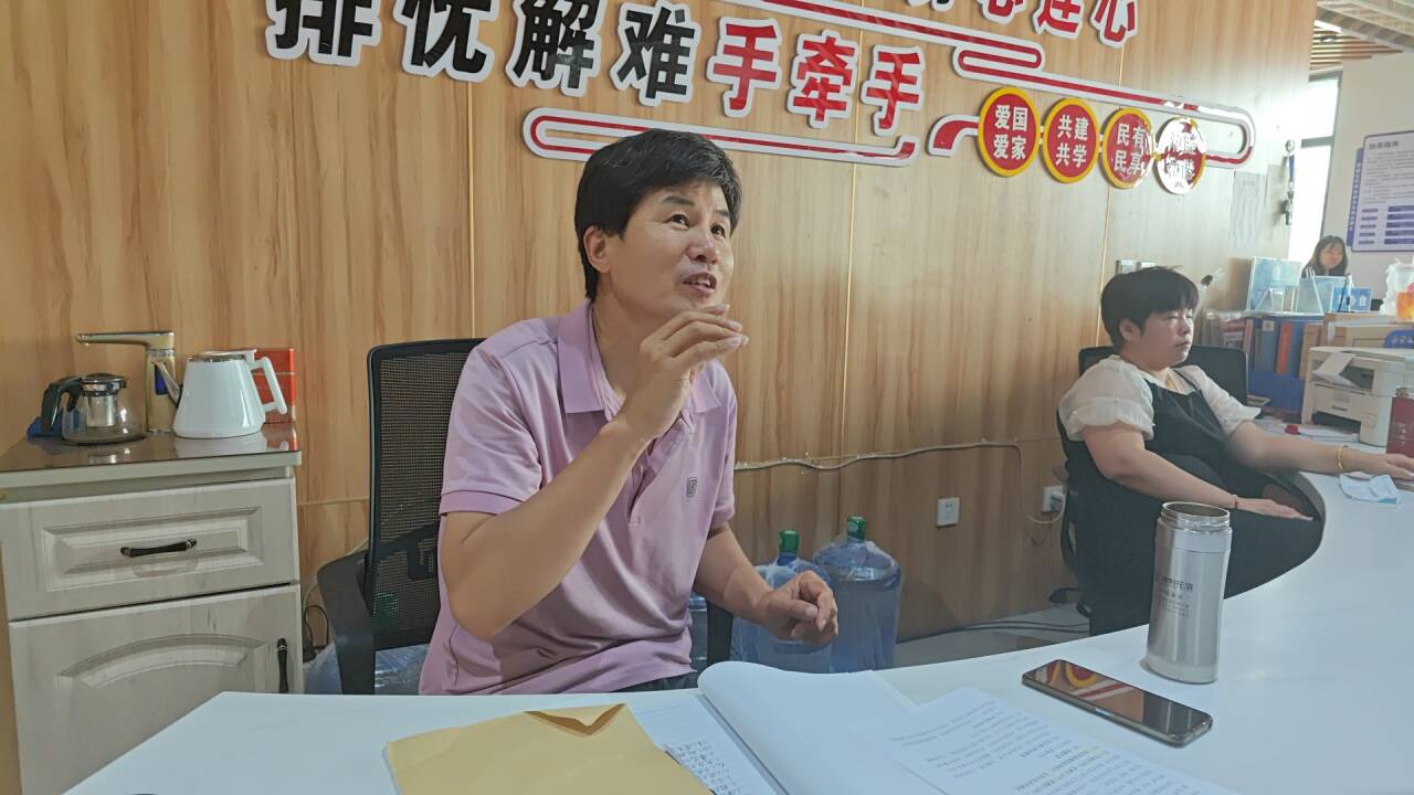 图为常胜社区党群工作人员回答硅小蒜科技助农团的走访