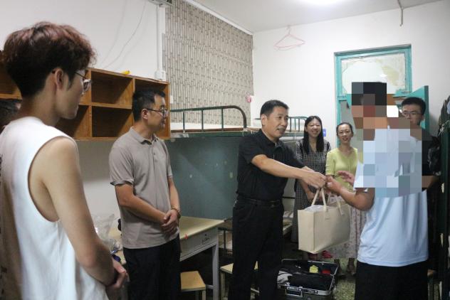 此外,迎新当天,学院党委书记王光坊带领院领导班子成员、辅导员走进新生宿舍,亲切看望报到新生,祝贺祝福新生开启大学生活,并就新生和家长关于在校学习生活等有关事宜进行了介绍。期间,学院一行还专门为家庭经济困难学生送上了爱心礼包,勉励学生笃定专业发展目标,健康成长成才。
