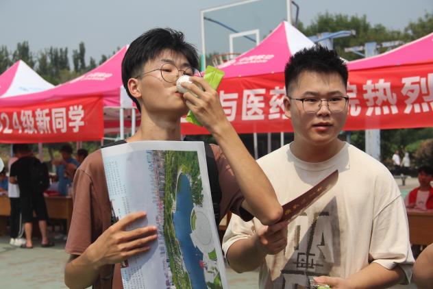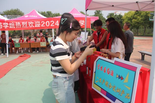 此外,迎新现场由科研成果转化产品、学生红酒综合实训产品和植物标本等组成的专业特色展区,更是成为了一众前来报到的家长与新生的“团宠”。一时间,大家或拍照观摩,或跃跃欲试,走红毯、品红酒、尝山楂、送产品,有品有范儿,有滋有味儿,体验感拉满,让人直呼过瘾。
