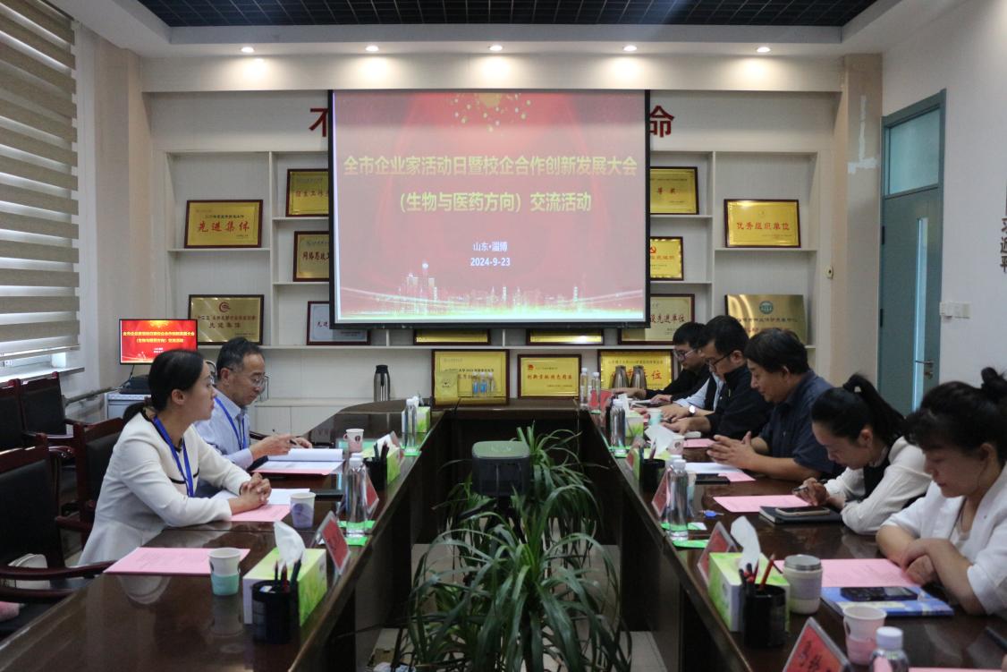 9月23日,学院在我校13号教学楼270室举办全市企业家活动日暨校企合作创新发展大会(生物与医药方向)交流活动。山东嘉百通医疗科技有限公司和山东泰宝集团主要负责人来院交流,双方围绕进一步加强产学研合作开展了深层次对话。学院执行院长王传贵、副书记姜素琼、副院长邓洪宽、副院长赵倩、学术副院长徐佳宁以及部分专业教师参加活动。活动由学院执行院长王传贵主持。