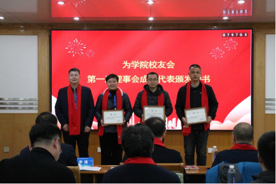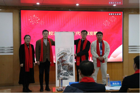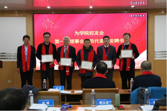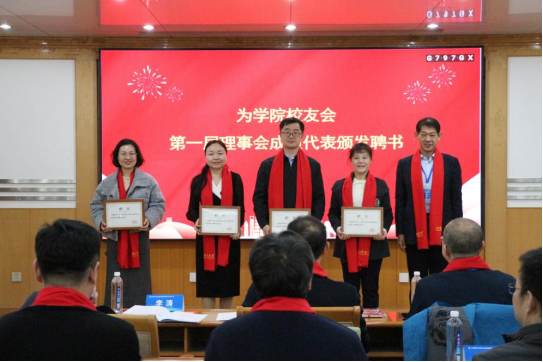 学院党委书记王光坊、院长杨凤堂共同为校友理事以及在学院工作奋斗过的教师颁发“校友工作之友”聘书。