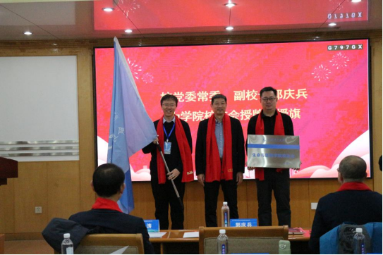 郭庆兵为学院校友会授牌、授旗。