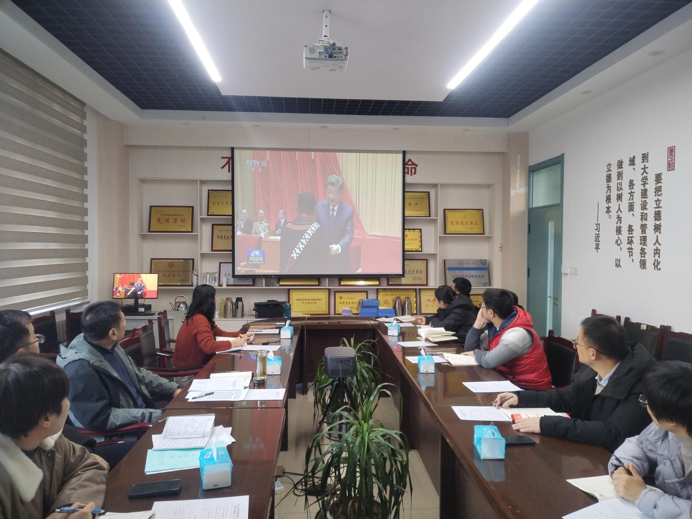 与会人员以收看视频的方式集体学习了习近平总书记在全国民族团结进步表彰大会上的重要讲话精神。学术副院长徐佳宁领学重温了习近平总书记在2023年致欧美同学会成立110周年的贺信。副院长邓洪宽传达了全省欧美同学会工作会议精神。