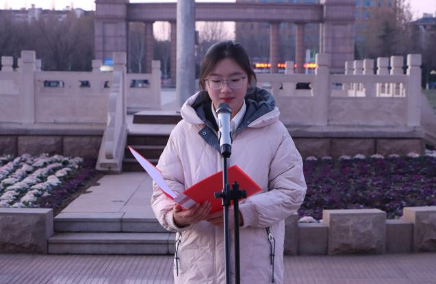 学院团委负责人作国旗下讲话,从铭记历史,不忘国耻,心怀感恩;坚定信念,勤学善用,肩负起新时代的责任;团结互助,敢闯敢进,书写无悔青春等三个方面向全体青年学子提出希望要求。她强调,历史的伤痛是一面镜子,照亮我们前行的方向。勉励大家以史为鉴,知耻后勇,珍惜现在,奋斗未来,以勤奋学习的奋进姿态和矢志报国的创新实践、优异成果告慰英灵,为实现中华民族伟大复兴的中国梦贡献青春力量。