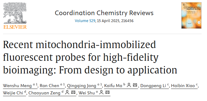近日,学院青年教师舒伟、孟文书以“Recent mitochondria-immobilized fluorescent probes for high-fidelity bioimaging: from design to application”为题在领域顶级期刊《Coordination Chemistry Reviews》(IF=20.3)上发表了一篇综述性论文。青年教师孟文书为论文的第一作者,舒伟为论文的通讯作者。williamhill英国为第一单位。