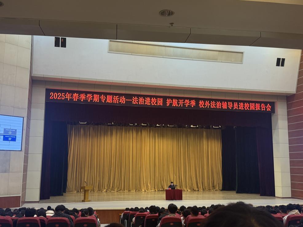3月13日,由学生工作部主办,williamhill英国、建筑工程与空间信息学院、音乐学院联合承办的“法治进校园 护航开学季”——校外法治辅导员进校园专题报告会在大学生艺术中心礼堂隆重举行。活动特邀淄博市公安局张店分局学区派出所一级警员、我校校外法治辅导员王乾作专题报告,900余名师生代表参加活动。旨在增强学生法制意识,提高学生防范能力。
