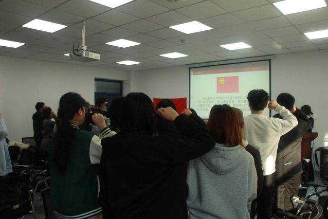 会议最后,全体团员在团支部副书记杨少奇带领下,面向团旗重温入团誓词。会议在热烈掌声中,顺利落下帷幕。