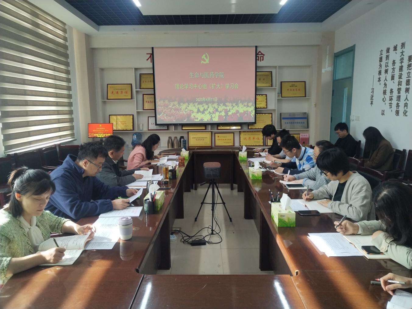 4月11日上午,学院党委在13号教学楼270会议室举行了理论学习中心组2025年第5次集体(扩大)学习,深入学习领会习近平总书记关于加强党的作风建设的重要论述,推进深入贯彻中央八项规定精神学习教育走深走实。学院党委委员、班子成员、各党支部书记、辅导员参加会议,党委书记王光坊主持会议。