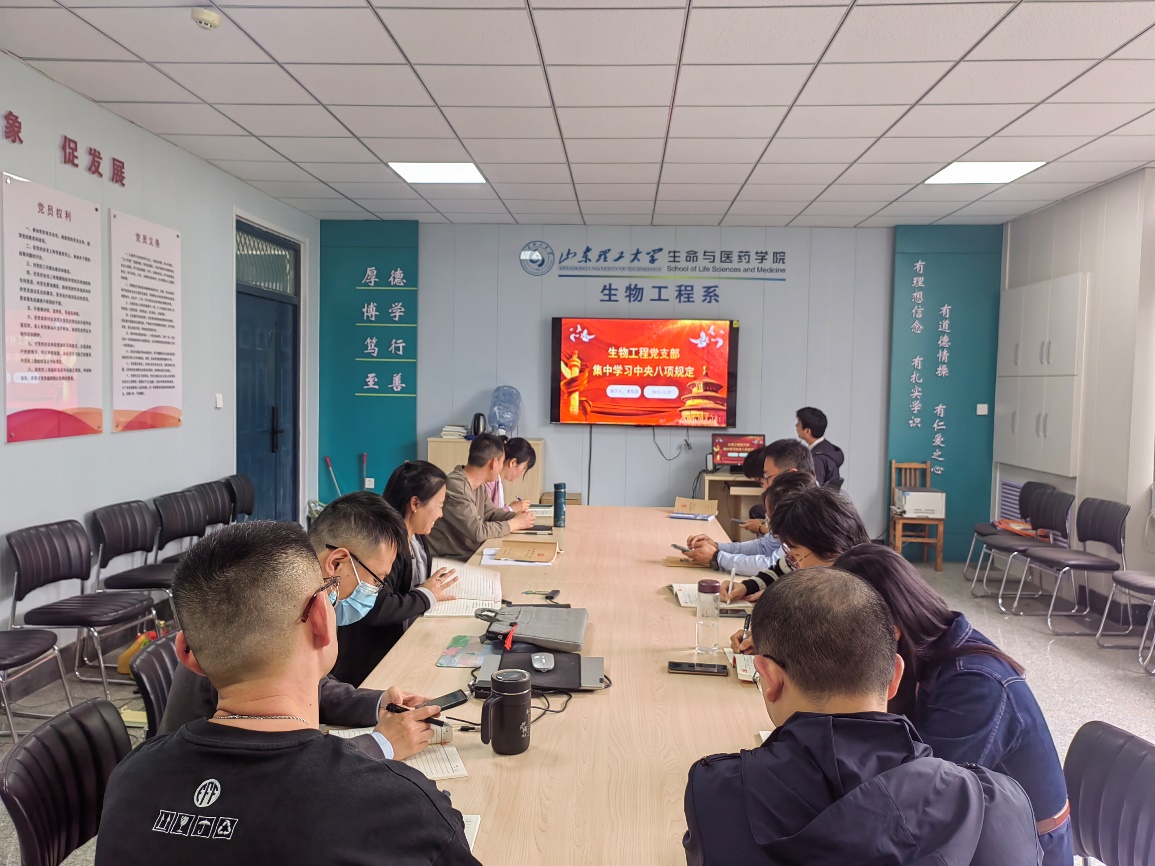 为深入贯彻落实全面从严治党要求,进一步强化纪律意识和作风建设,生物工程系教工党支部于4月27日在学院339会议室开展主题学习,集中学习中央八项规定精神及典型案例。会议由党支部书记赵延芳老师主持,窦伟浩老师领学,全体教工党员参加。