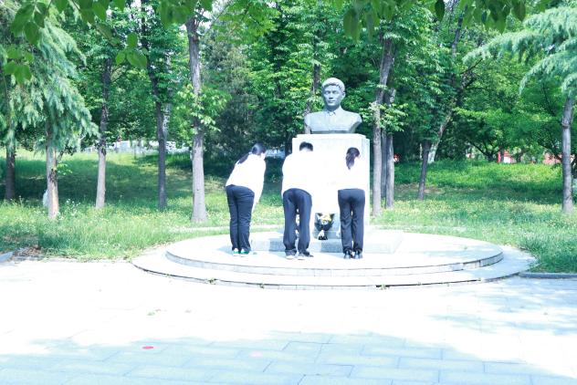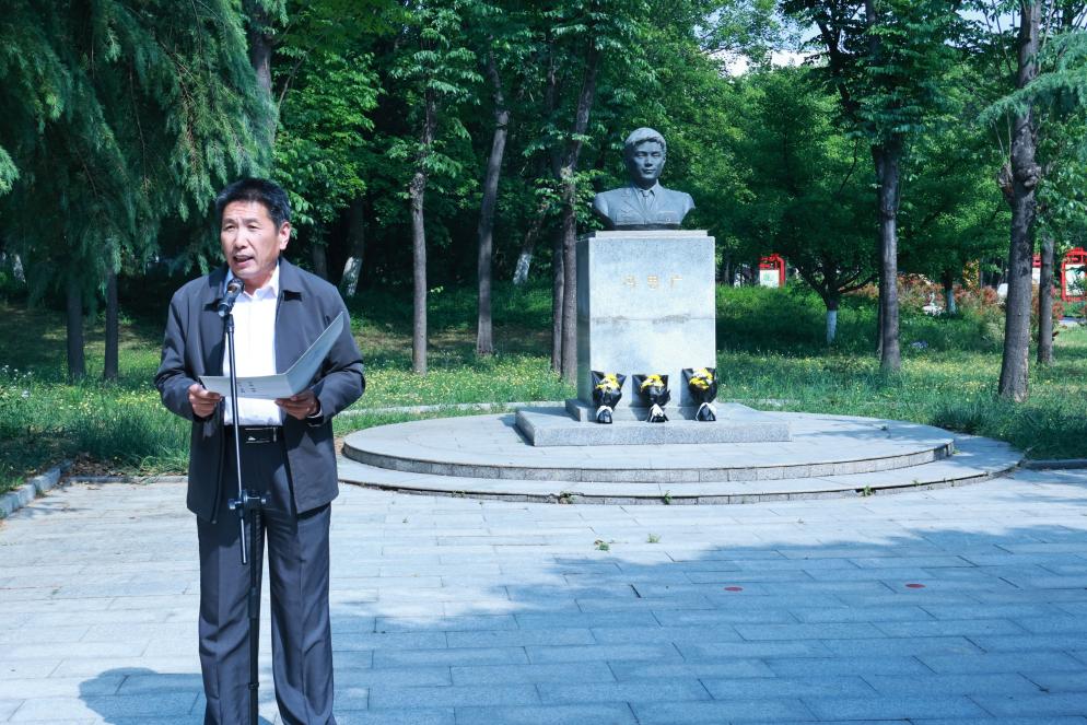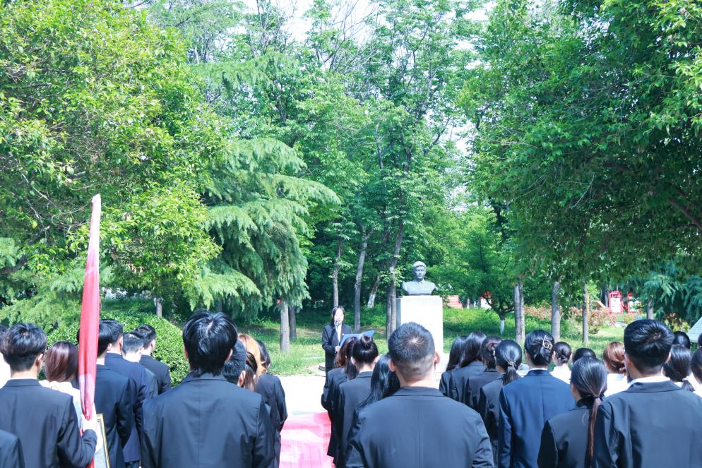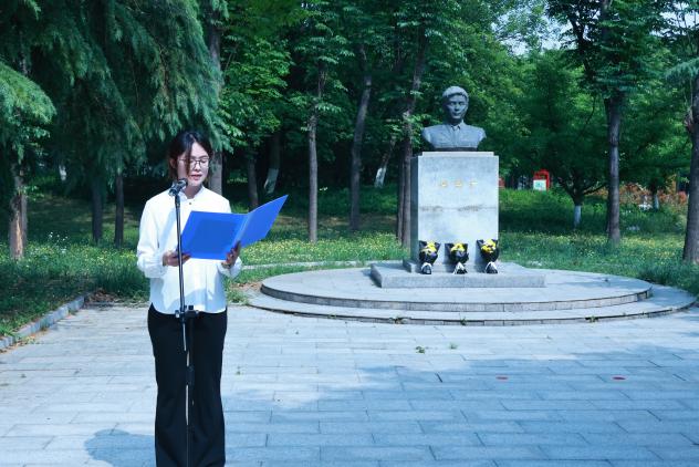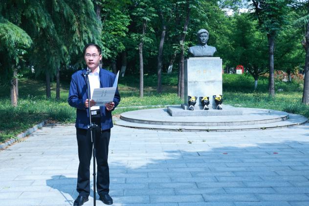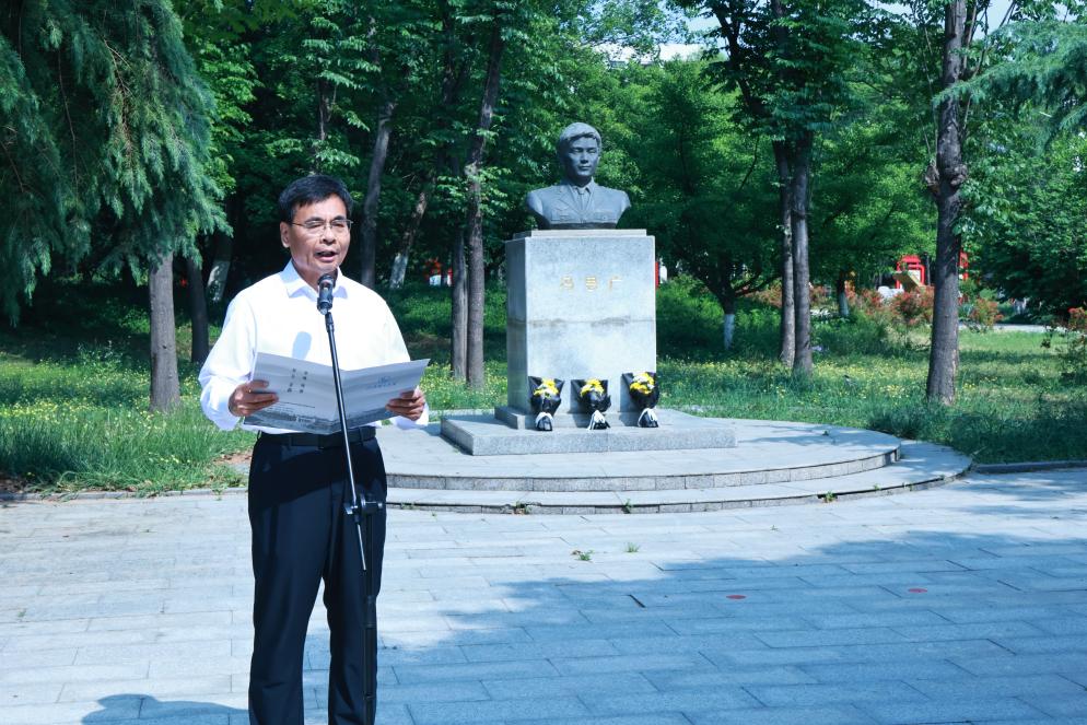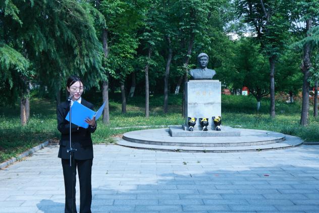 仪式上,“冯思广精神”宣讲团成员张雅蓝宣讲了冯思广烈士生平事迹,学生代表宗宙燕、付汶玄、孟宪鹏向烈士雕像敬献鲜花,全体人员集体默哀悼念。