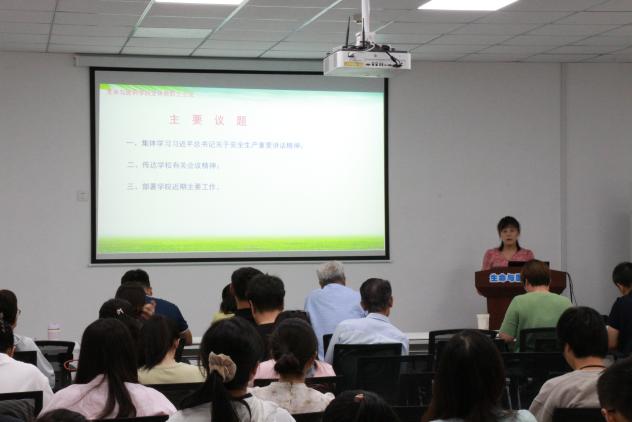 6月5日下午,学院在13号教学楼215报告厅召开全体教职工大会,集体学习习近平总书记关于安全生产的重要讲话精神,传达学校有关会议精神和工作要求,并就近期重点工作作出安排部署。党委书记王光坊主持会议。