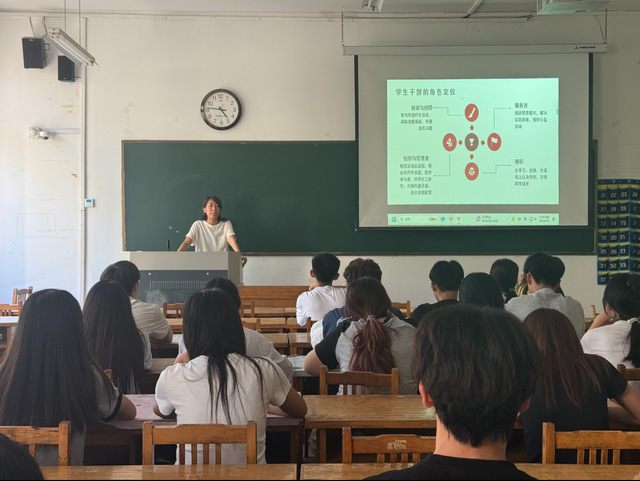 刘丛丛深表赞同,她对学生干部过去一学期在学习、工作、生活中所展现出的拼搏精神和优异成绩给予高度肯定,随后,她从学生干部角色定位、学生干部必备的核心能力与素养、工作方法与实践技巧、平衡学习与工作的策略、未来发展与自我提升等五个方面对学生干部进行了培训,希望学生干部以身作则,起到榜样引领作用,秉持奉献精神,带领全体同学共同进步,为校园发展贡献青春力量。
