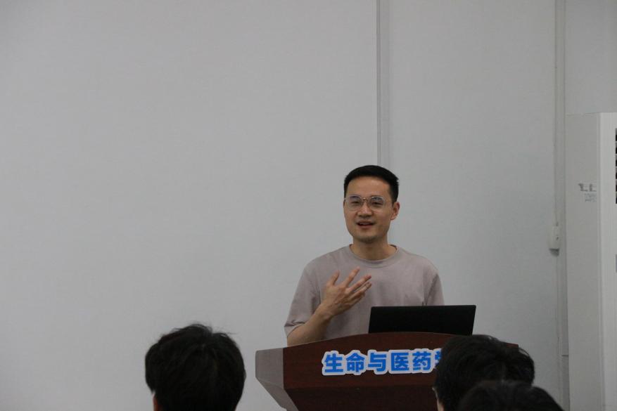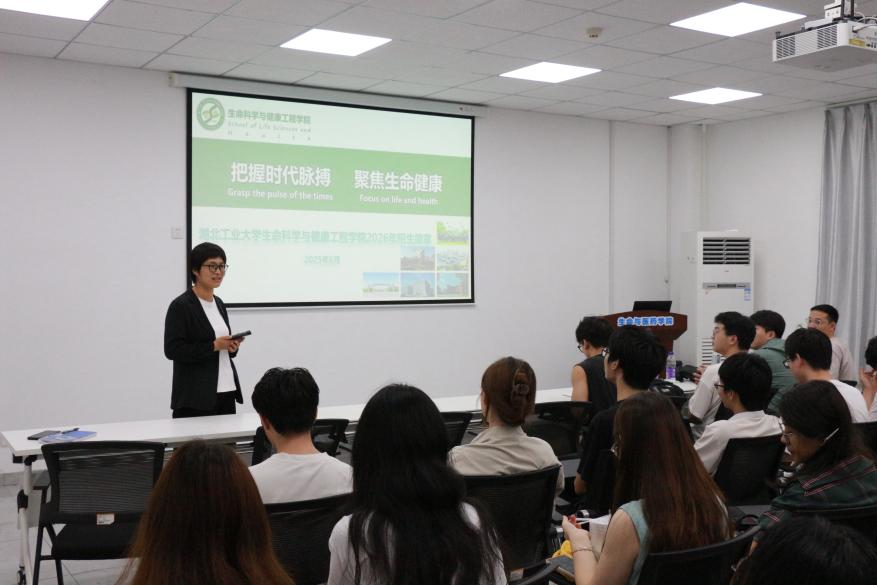 随后,江文宏以“把握时代脉搏 聚焦生命健康”为题,对湖北工业大学及生命科学与健康工程学院有关情况进行了介绍,重点对所在科研团队的研究方向、师资支撑、研究成果等进行了分享,并结合个人求学经历,为学生当下及未来的发展规划给予了中肯建议,并诚邀大家积极报考湖北工业大学,加入科研团队,共同为生命学科发展研究尽一份力。