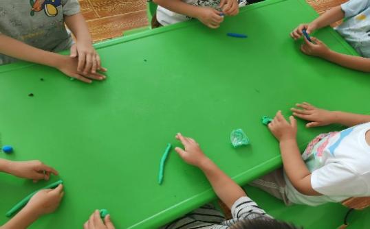 互动实践环节,实践团成员带领引导着小朋友发挥想象,用太空泥捏出自己心中的小涡虫。在动手操作中,帮助其加深对涡虫的认识。