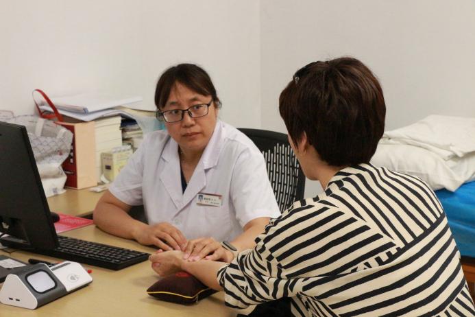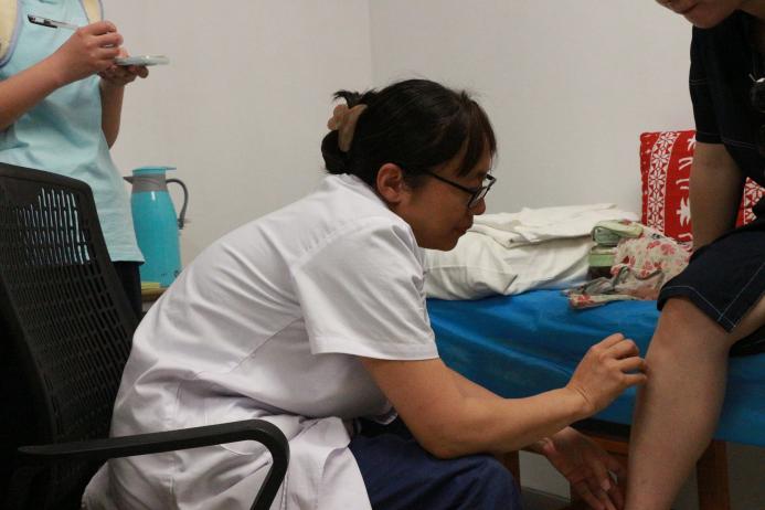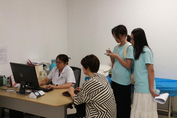 在李老师的带领下,实践团走进妇科门诊的专科诊室。现场,医生正在为患者施行平衡针疗法,腕转指旋间精准点按肾关穴等关键穴位,手法与《济阴纲目》中记载的“点穴调气”技法一脉相承。
