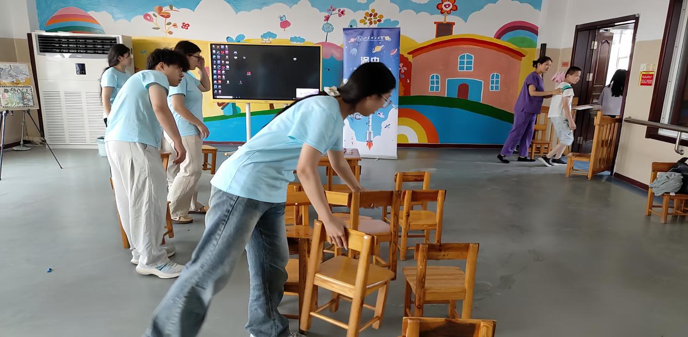 辅导作业结束后,实践团成员们手持清洁工具,从擦拭窗户到整理图书角,从清扫活动室到摆放桌椅,每个角落都留下忙碌的身影,以实际行动为福利院儿童营造更加安全、整洁、舒适的学习与生活环境,为他们做榜样。