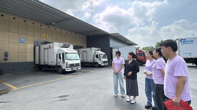 图为团队成员在负责人带领下参观运输流程 闫伟鑫摄