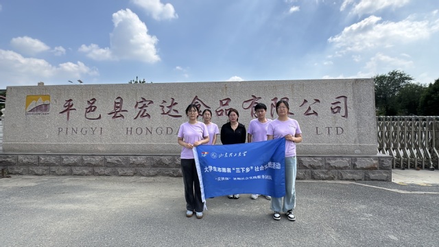 图为团队成员在平邑宏达食品有限公司的集体合照 闫伟鑫摄