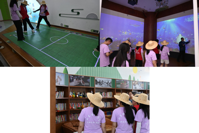 除去可公益化的直播电商间,展览中心内还建有智能重力感应电子足球场、红外感应数字展幕以及爱心图书非遗文化角等特色数字化板块,可供幼儿研学体验。合作社内所采取的“采摘+研学”这一合作模式,也吸引大量游客购买采摘券前往基地体验,有力推动了农产品销售与农旅融合。