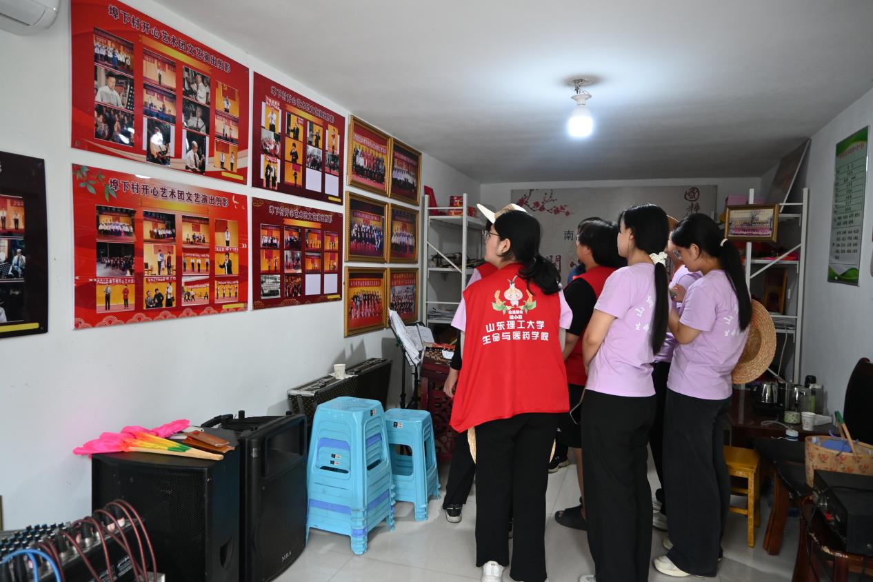 图为实践团在阅览埠下村艺术团发展历程