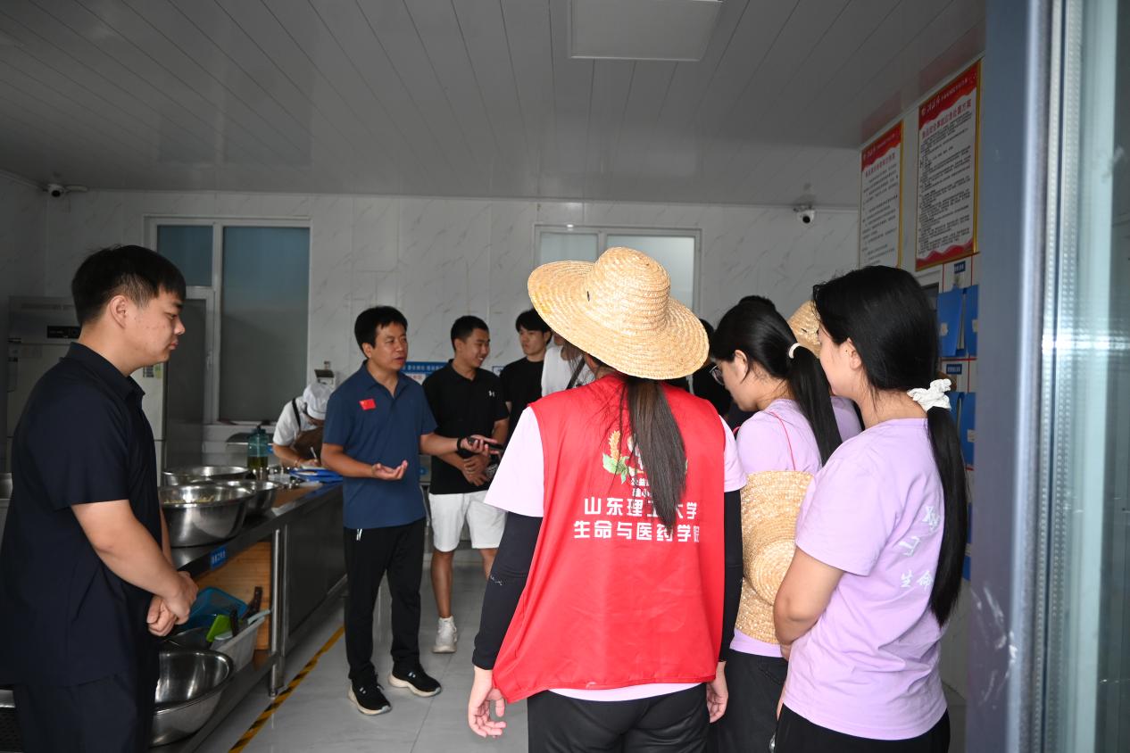 图为实践团在村干部介绍下参观长者食堂