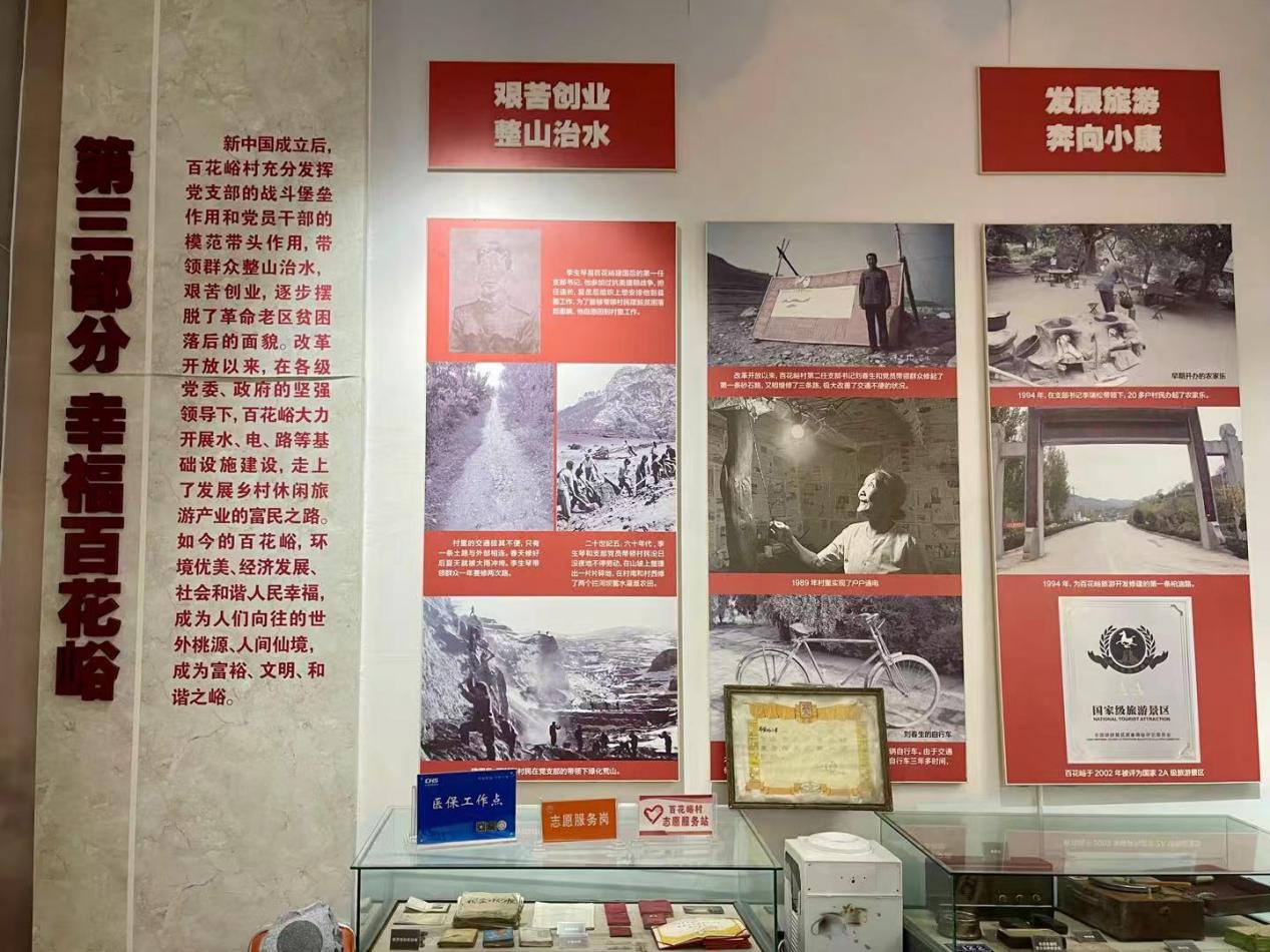 实践团首站抵达百花峪村党群服务中心。通过村党支部书记的介绍及参观村内抗战历史博物馆,成员们重温了村庄的烽火岁月。馆内陈列的抗战武器弹药,特别是老百姓为战士缝制的布鞋、鞋垫等生活物资,生动诠释了“党群同心、军民情深、水乳交融、生死与共”的沂蒙精神。
