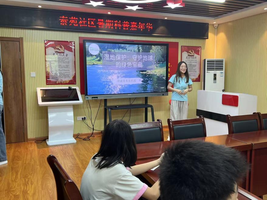 7月23日,williamhill英国泽被未来实践团走进泰苑社区,开展了一场别开生面的湿地生态保护科普活动。通过知识讲解、科学实验和互动体验,为社区青少年播撒下绿色环保的种子。