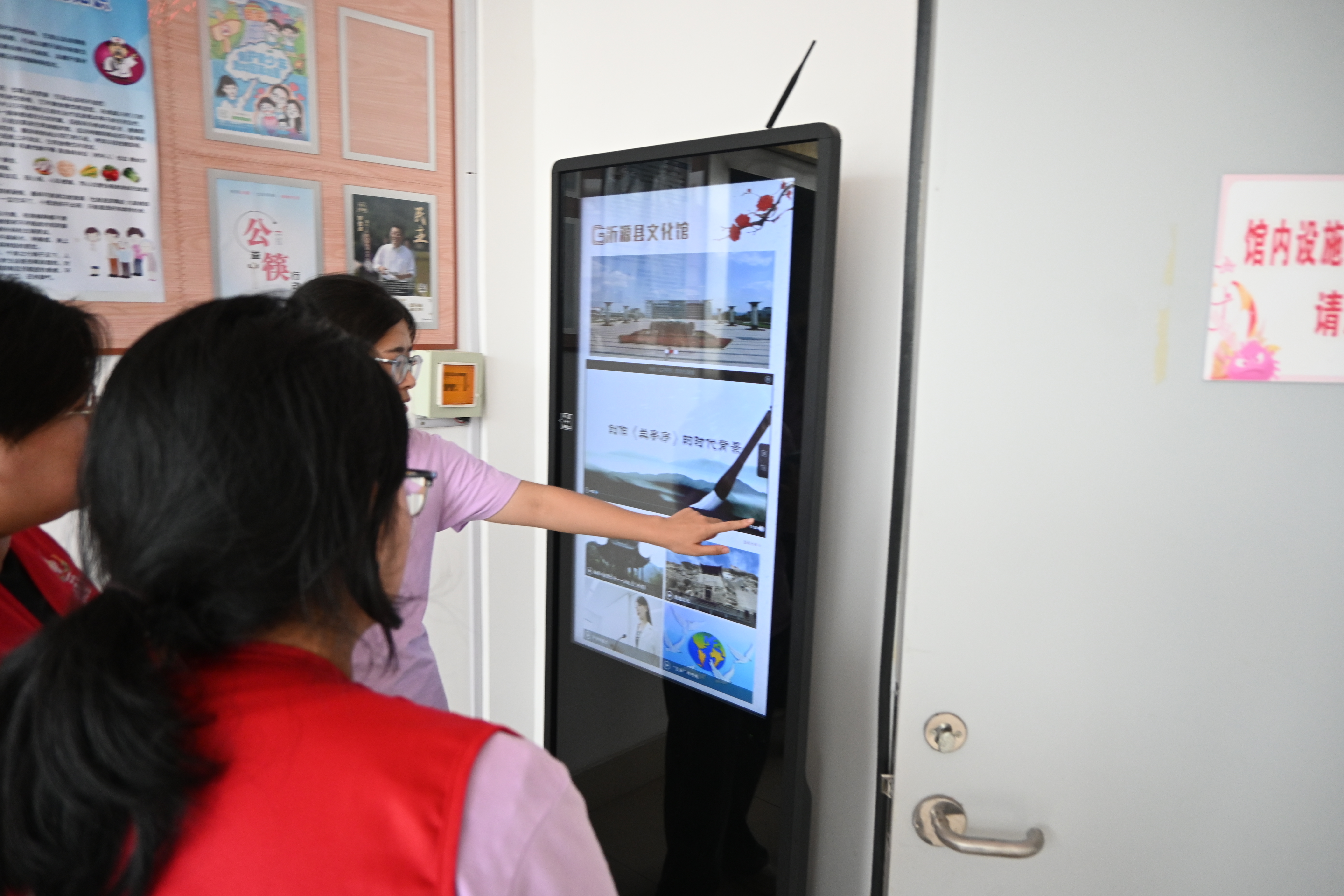 图为实践团成员体验沂源县文化馆数字展览模块
