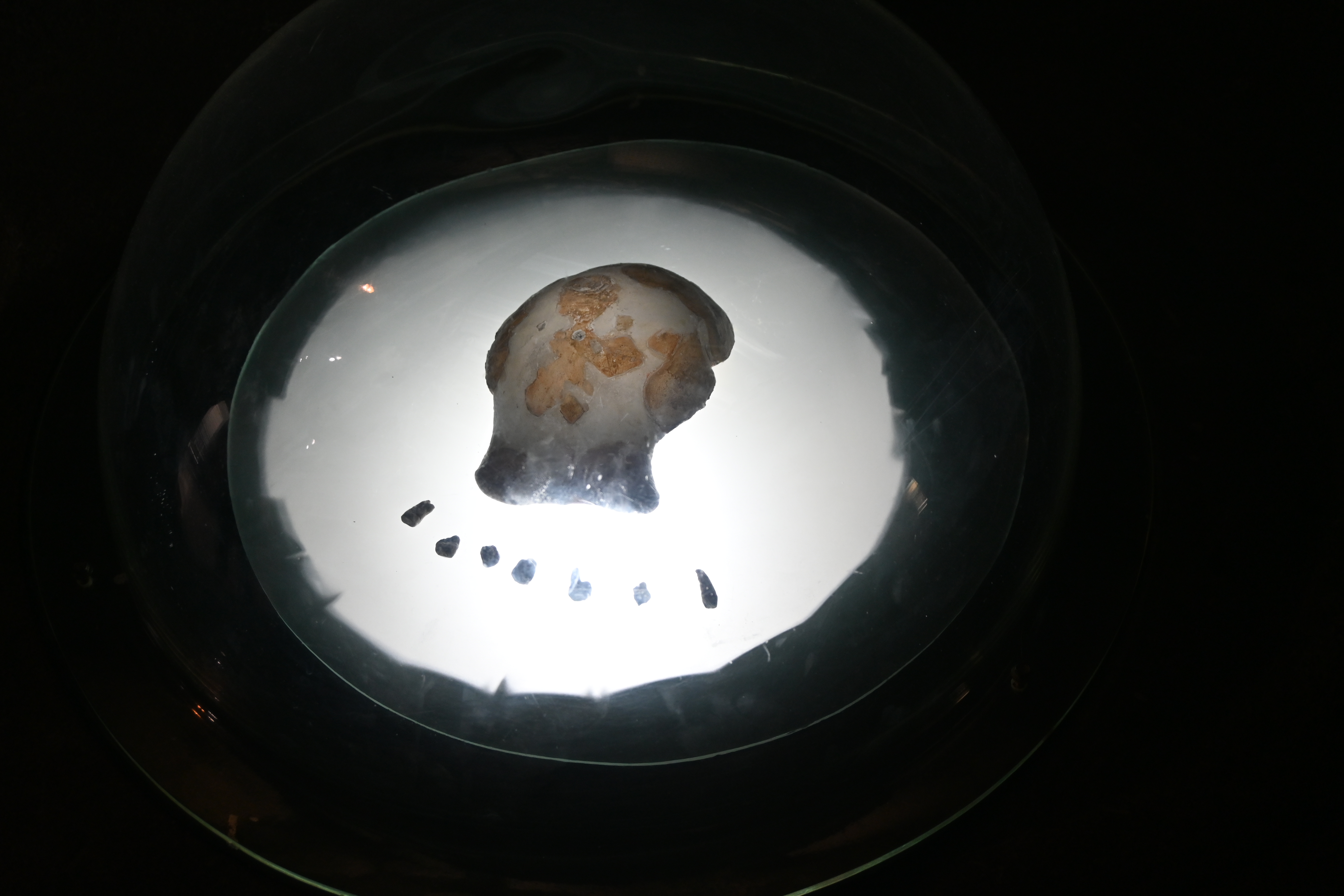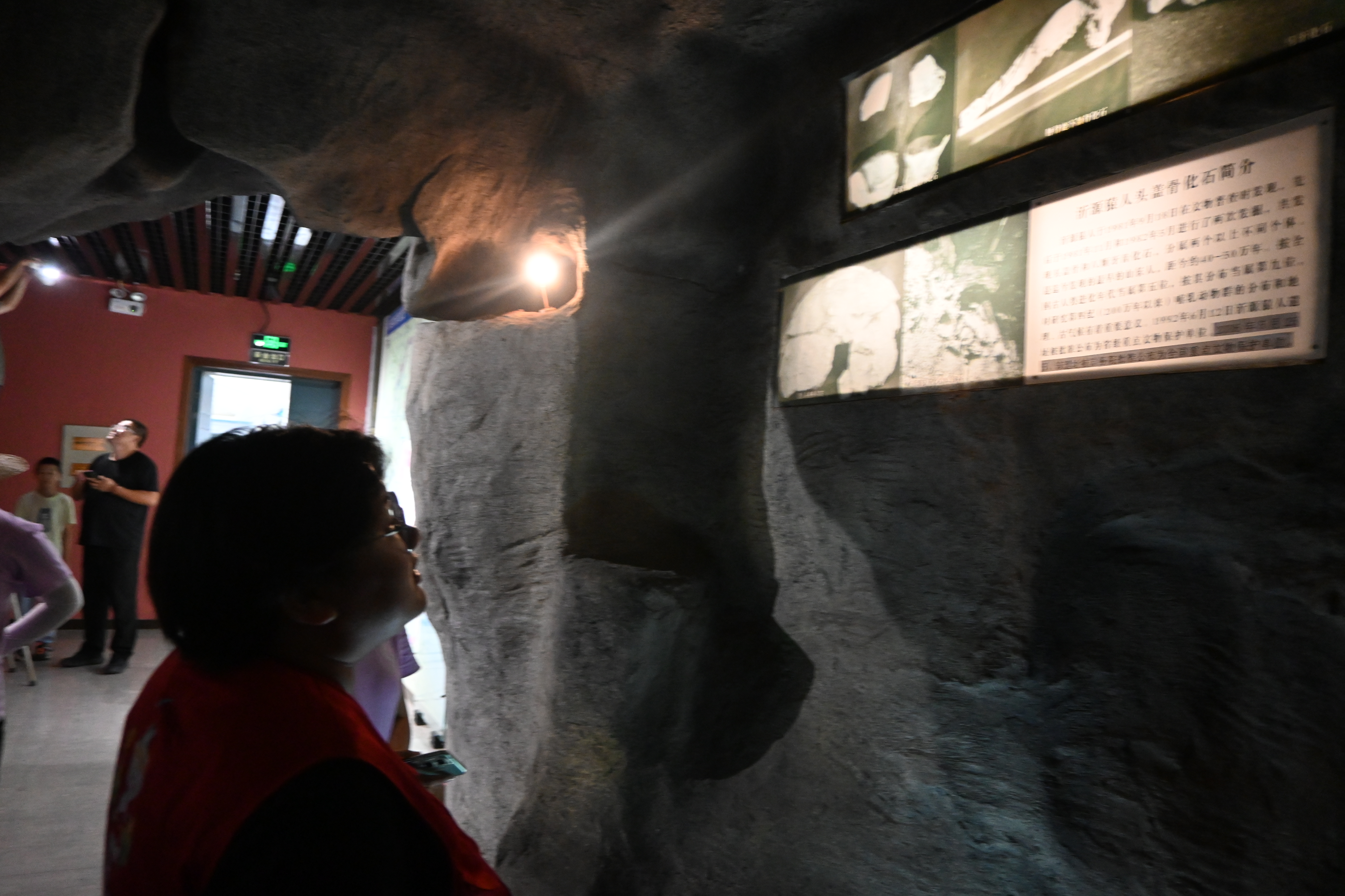 图为馆内展出的古猿人化石