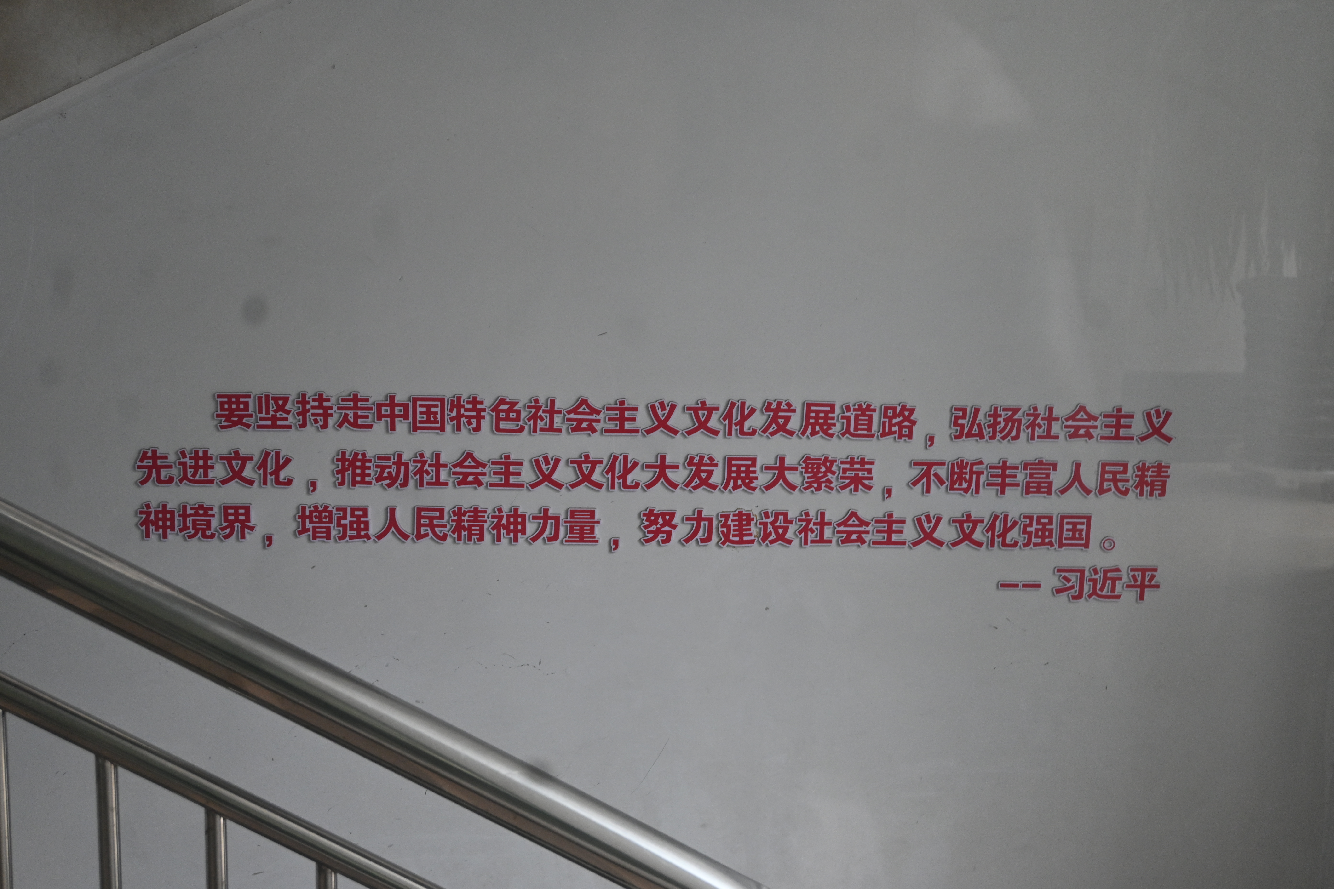 图为楼内有关文化传承政策的相关标语