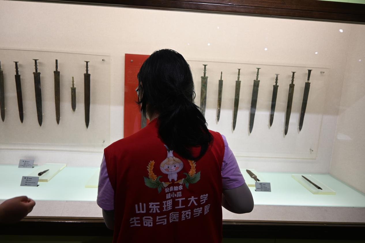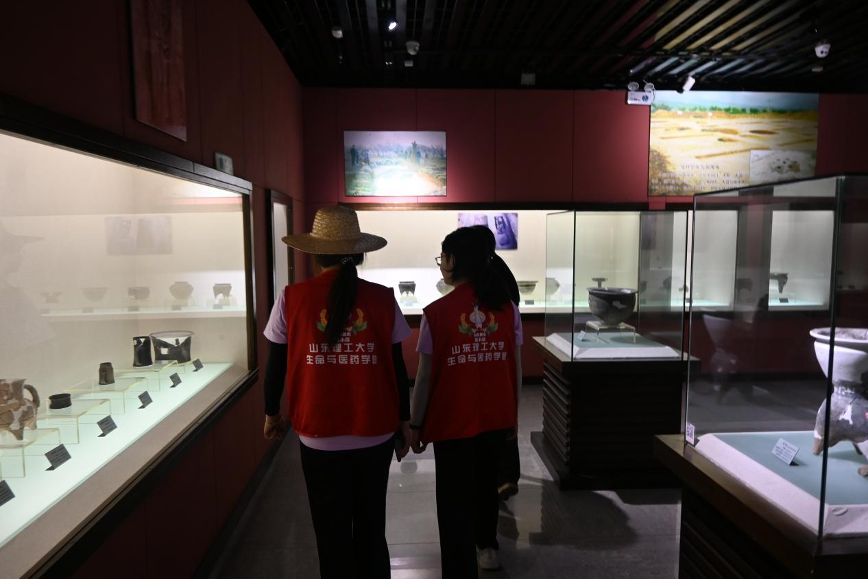 团队成员首先乘坐电梯,来到了位于文明实践中心三楼的医院县博物馆。在工作人员的指引与带领下,步入博物馆内,扑面而来即是历史的厚重感。馆内陈设处处考究,而文物的陈列布局与环境的搭建更是体现出沂源对于文化传承的重视。