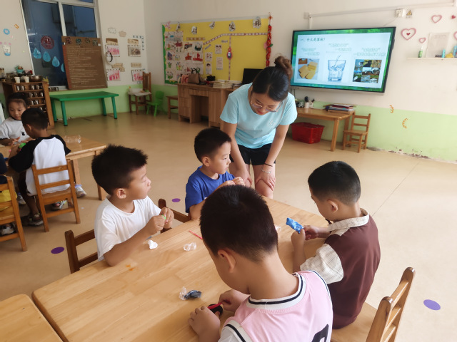 随后,结合幼儿动手能力与想象力发展的特点,实践团设计了“太空泥捏制湿地生命”手工环节,鼓励孩子们用太空泥塑造湿地中的小动物或植物。在创作过程中,实践团成员与孩子们近距离交流,引导他们思考湿地生物的生存需求以及如何守护它们的家园,让生态保护的理念在实践中自然渗透。