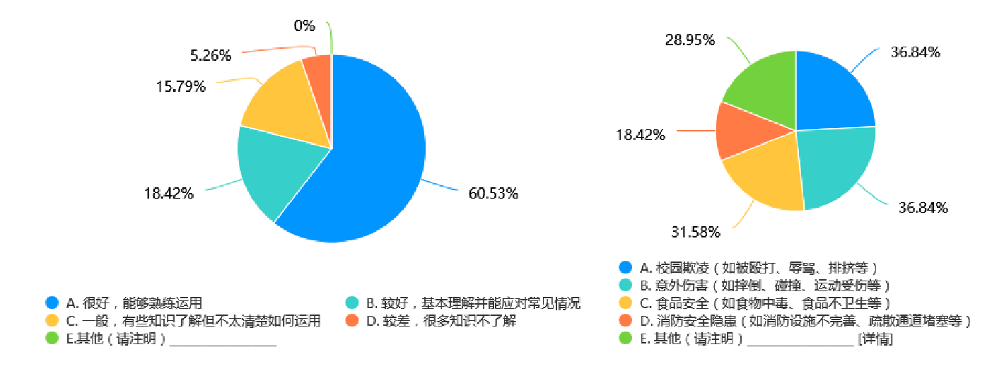 令人欣慰的是,60.53%的受访者认为孩子对安全教育知识的掌握程度良好,能够熟练运用。这反映出家长对现行安全教育效果的积极评价。