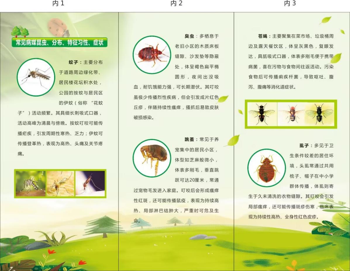 手册里的高清图片与简明文字,正像一双双清晰的“眼睛”,引着居民快速识清那些潜藏的健康威胁:蚊子偏爱积水处,是登革热、疟疾的“搬运工”;苍蝇携带着细菌四处污染食物,痢疾、伤寒常因它而起;蟑螂总在夜间出动,悄悄散播着沙门氏菌与寄生虫卵;蜱虫躲在草丛里,一不留神的叮咬就可能引发莱姆病、发热伴血小板减少综合征。一页页翻看间,这些病媒昆虫的习性与危害,便通过图文交织的方式,清晰地印入居民心中。