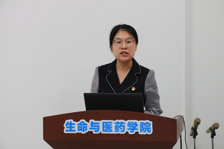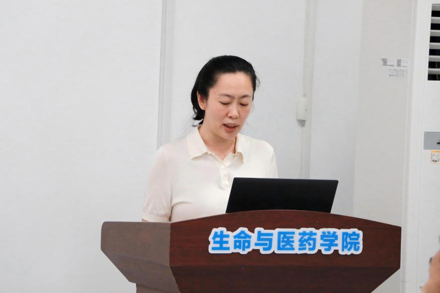 制药工程系与生物医药研究院教工党支部书记曹忠红作为优秀共产党员代表作了发言。回顾了个人从教生涯以及涡虫空间项目经历及感悟收获,明确了以党建引领推动事业发展的核心路径,分享了党建和业务工作融合的典型做法,表示将继续以“赶考”姿态,在立德树人、科研报国中书写党员教师的答卷。